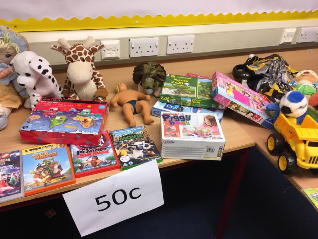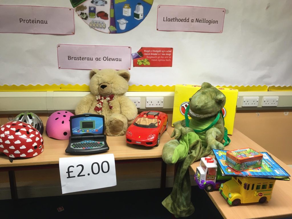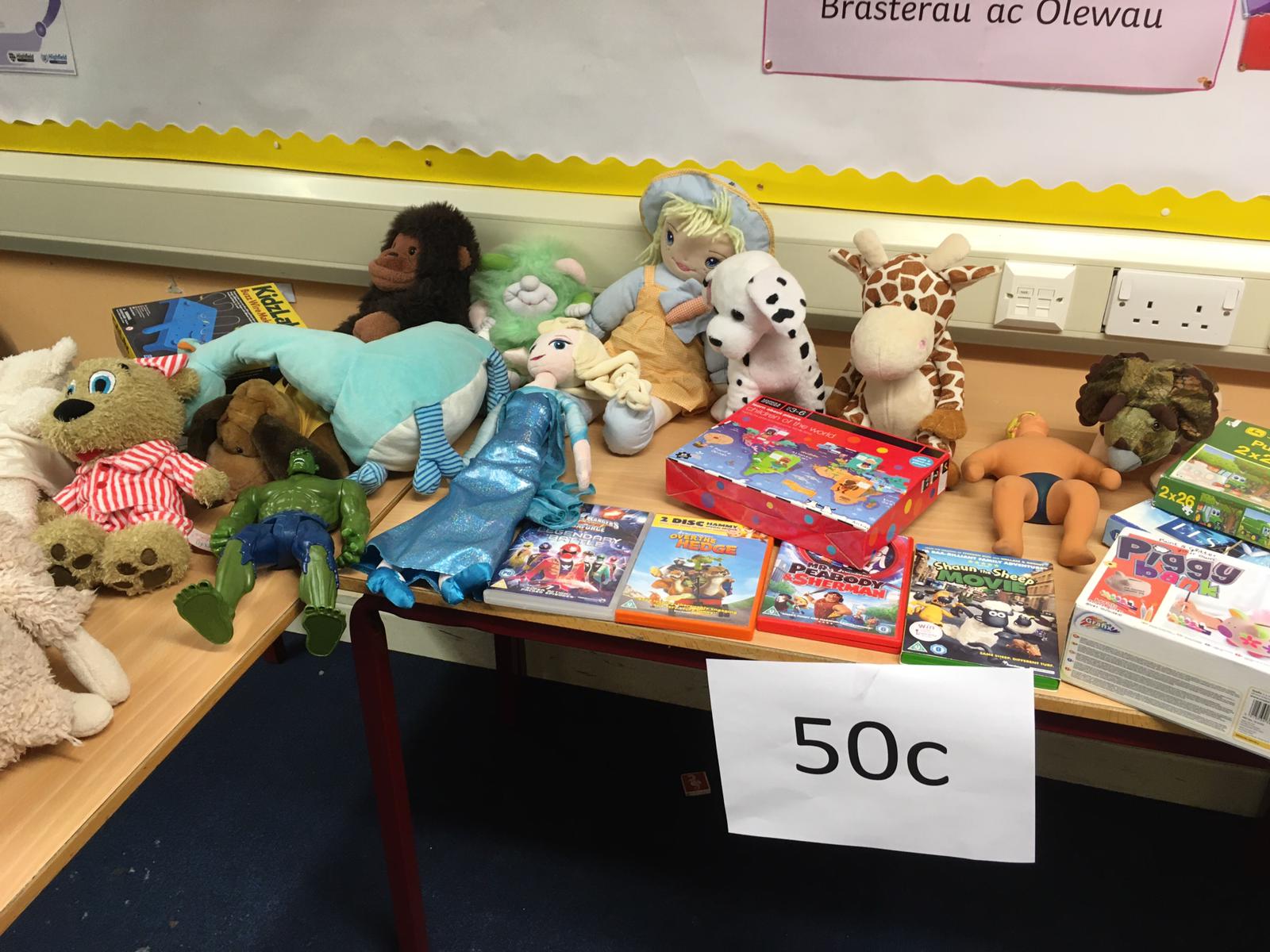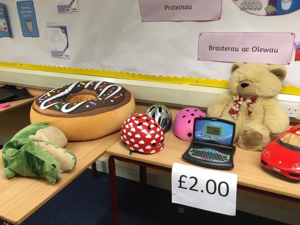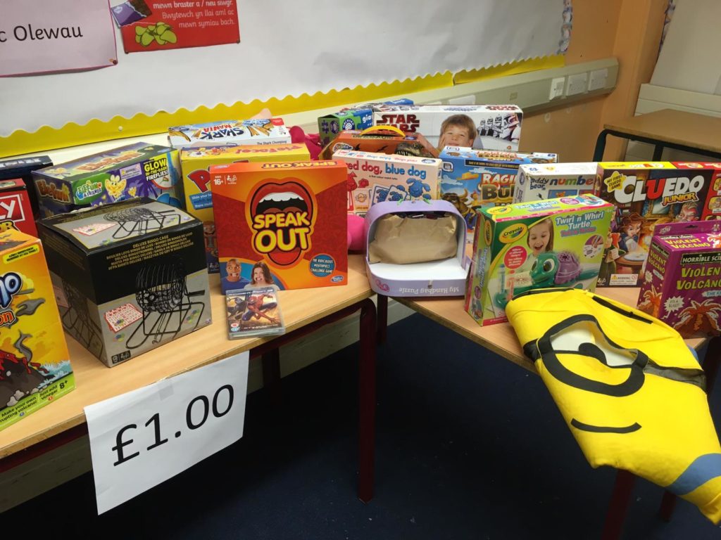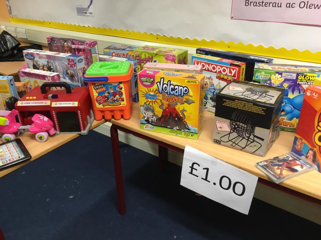 Rydym dal i ofyn am gyfraniadau ar gyfer y ffair os gwelwch yn dda. Mae pethau gwych wedi dod yn barod (gweler y lluniau) – bydd amrywiol brisiau yn dechrau o 20c hyd at £2. (Petai’r plant yn gallu dod a arian man, byddai hynny yn wych!) Byddai’n syniad i’r plant ieuengaf rhoi ei arian mewn amlen gyda ei enw arno.