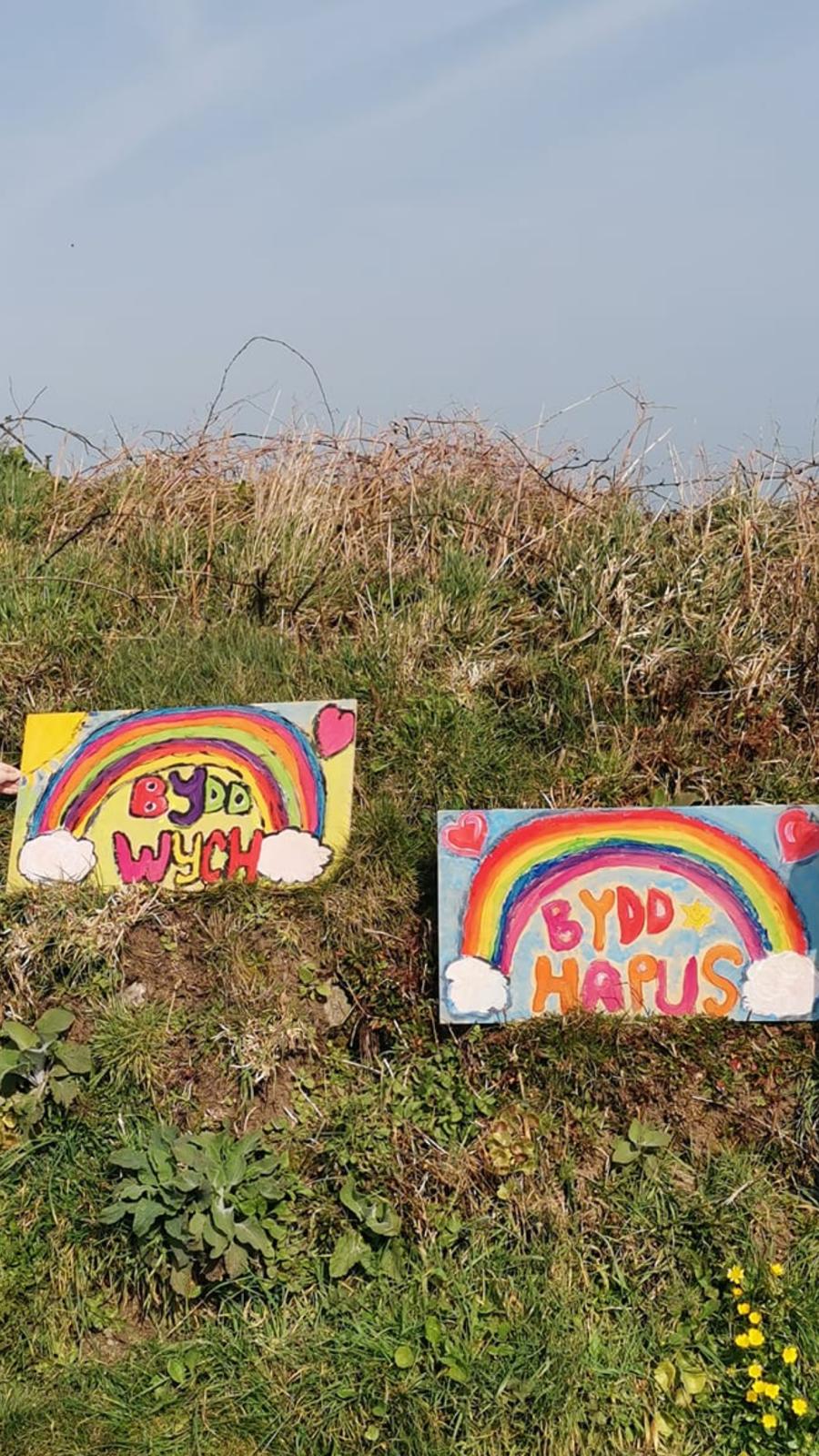 A campaign has begun on social media to spread some happiness within your community during this difficult time. A group has begun called Arwyddion Codi Calon (Signs to spread happiness) which encourages children to create posters at home and display them in their windows. Lots of children have used a rainbow as a sign of hope, and others have used the Welsh saying “Daw eto haul ar fryn” which meaning something similar to “After every storm, comes a rainbow”. What about encouraging your child to take part? If you would like to tweet us @YsgolG we would love to see your photos. We are hopefully going to make some in school tomorrow so that we can spread some happiness to our neighbours.
