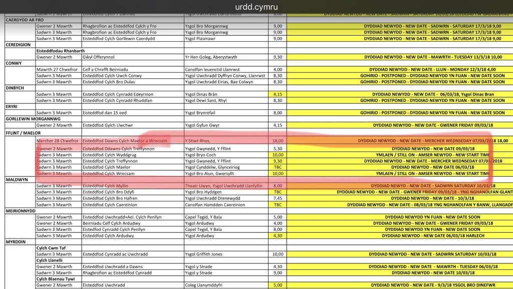 Please follow link below for updated information regarding the Urdd Eisteddfod. The Eisteddfod is still on at the moment but the time has changed. The Eisteddod is now to begin at 10 o clock.