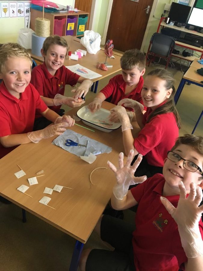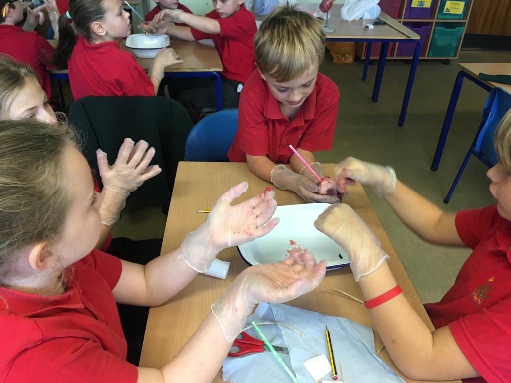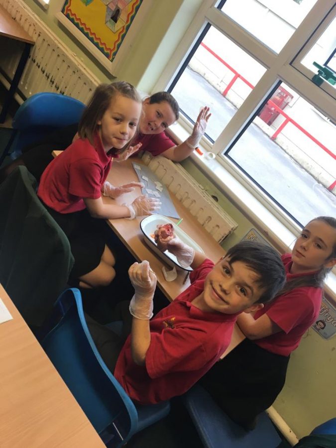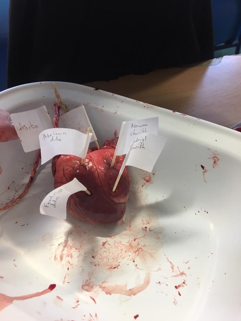 The pupils were discovering more about the heart in a practical way! They were very keen to label the different parts… to expolre the different tubes and their functions and to create incisions to explore the different chambers!! Lots of fun, group chat and the odd squeamish face!
